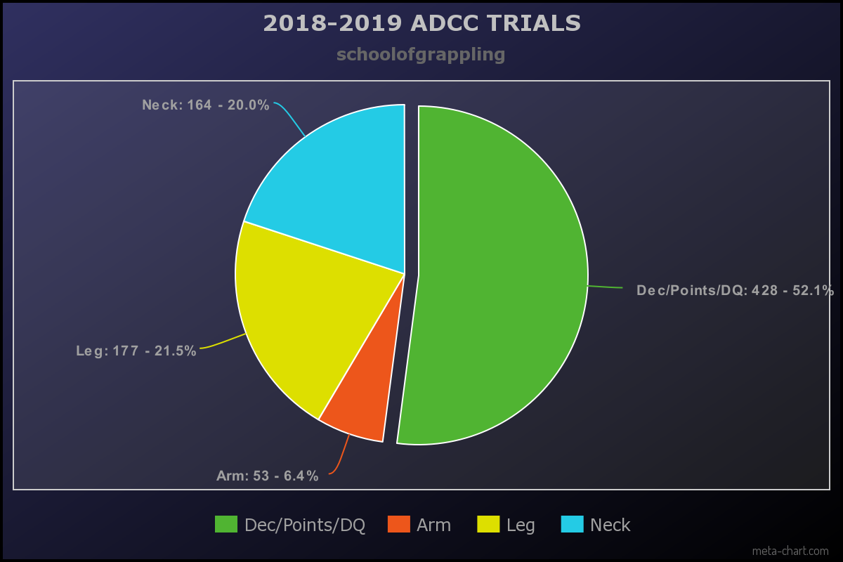 Let's now compare the 2 ADCC events we go this years with previous year's ADCC trials. I got these stats from the very interesting instagramer, schoolofgrappling. Check out their others posts too, they're very interesting.